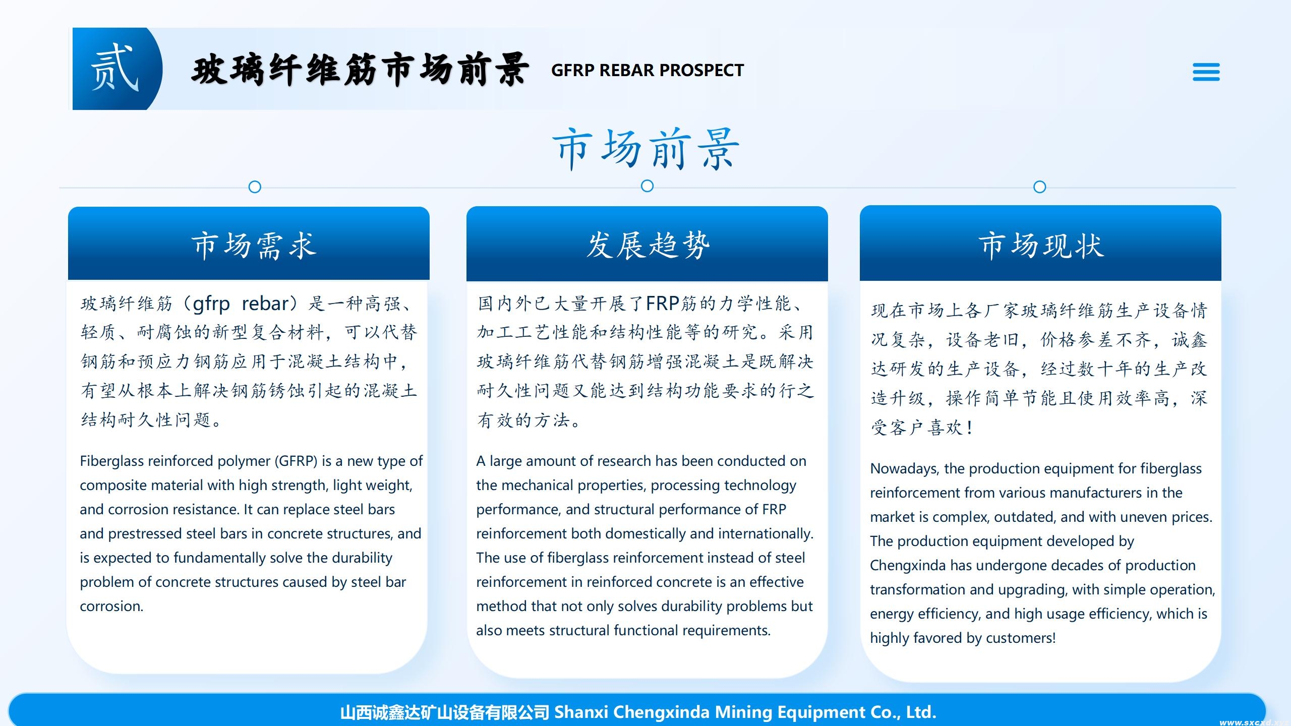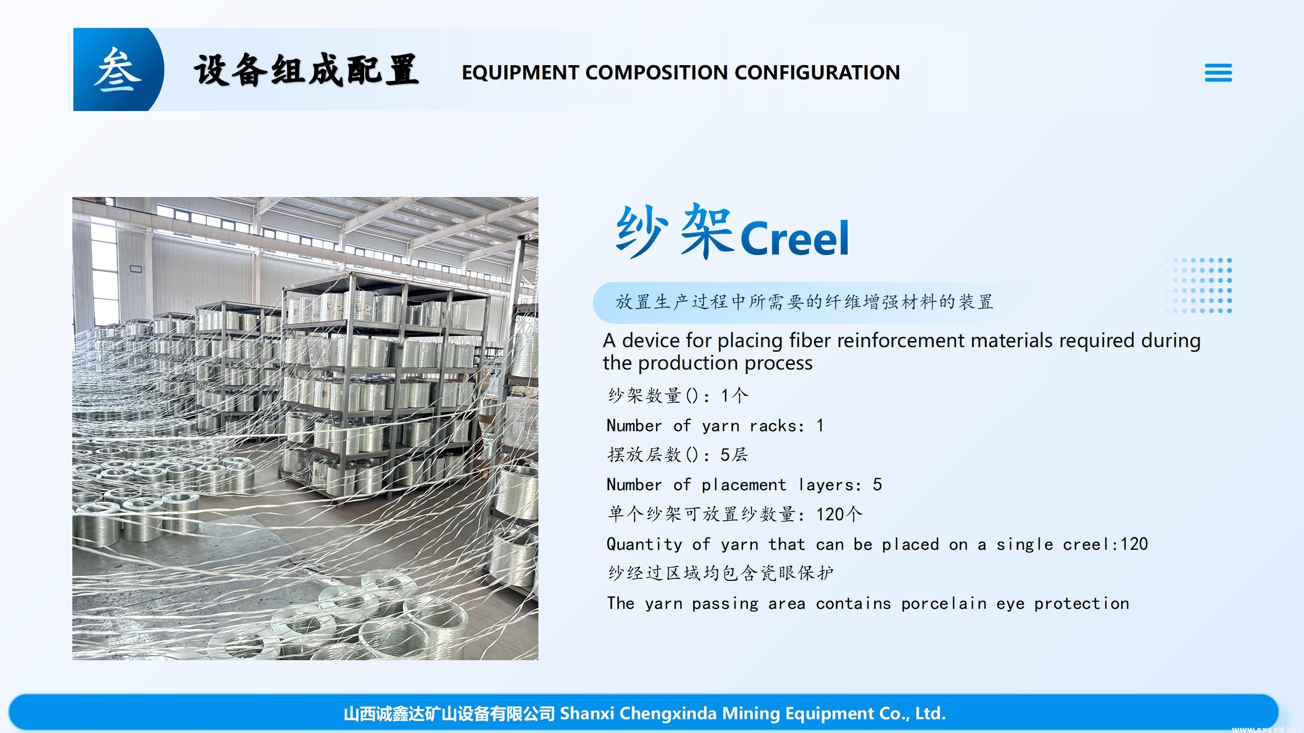 玻璃鋼全螺紋錨桿生產(chǎn)線生產(chǎn)的玻璃鋼錨桿桿體性能不僅滿足(中華人民共和國煤炭行業(yè)標(biāo)準(zhǔn)MT/T1061-2008)要求,而且還能滿足發(fā)達(dá)國家先進(jìn)技術(shù)標(biāo)準(zhǔn)的要求(BS7861-2007),該生產(chǎn)線生產(chǎn)效率高,能耗低,用工少,適用性強(qiáng),不僅適用玻璃鋼(GRP)全螺紋錨桿,的生產(chǎn),還適用于生產(chǎn)土工工程用玻璃纖維(GFRP)增強(qiáng)筋材的生產(chǎn)!