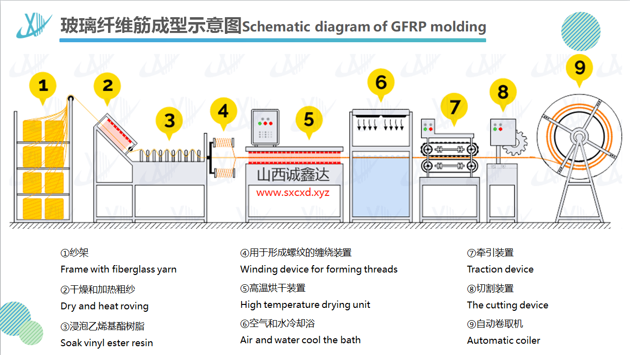 玻璃鋼錨桿,玻璃纖維筋生產(chǎn)設(shè)備示意圖