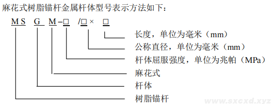其中:MS指的是樹脂錨桿,G是桿體,M是麻花式,235是桿體屈服強(qiáng)度,單位為MPa,16是直徑,1800是長(zhǎng)度。